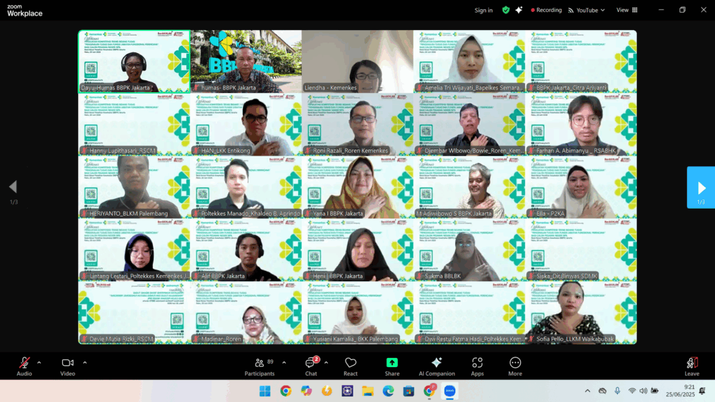 Jakarta, 25 Juni 2025 – BBPK Jakarta kembali menunjukkan komitmennya dalam pengembangan kompetensi sumber daya manusia Kementerian Kesehatan RI dengan menyelenggarakan Webinar Penguatan Kompetensi Teknis